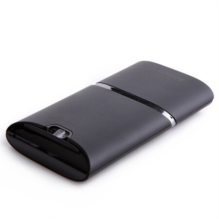 2013年我购置一款可以说十分具有创意的鼠标,用来配合笔记本电脑使用,因为它采用蓝牙4.0 + USB2.4G无线双模设计。它的鼠标中键支持触控操作,例如向左滑动就可以关闭窗口。机身有两种状态,可以翻转节省笔记本包的空间,平躺状态时是关闭鼠标,若长按中键激活PPT翻页笔模式,可打开激光灯,左右键翻页,真是十分好用!我想在2013年能有这样的设计真是超前了,它的样子如下: